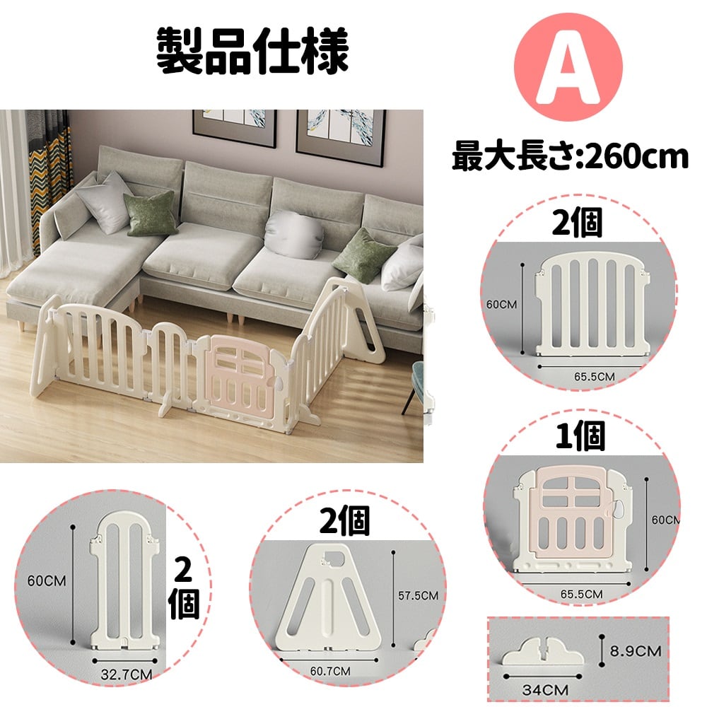 【当日発送】【Aタイプ】260cm キッズパーテーション ベビーゲート テレビ ベビーサークル ワイド ベビーガード 置くだけ 自立式 ドア付き プレイヤード ベビーフェンス 柵 簡単設置 フェンス 間仕切り リビング 安全ゲート D-26
