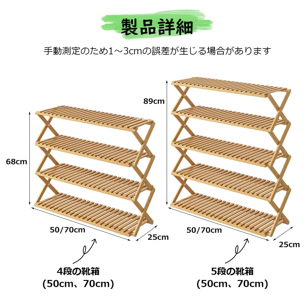 【当日発送】【バージョンアップ】【幅50CM-4層】高級感 折り畳みシューズラック シューズラック ベランダ 竹製 コンパクト ラック 傘立て オープンラック下足箱 折畳式 完成品 組立不要伸縮 しっかり 省 スペース 4/5段あり 小物置き 玄関家具 オシャレ 便利 丈夫 靴収納棚 下駄箱 Z-01