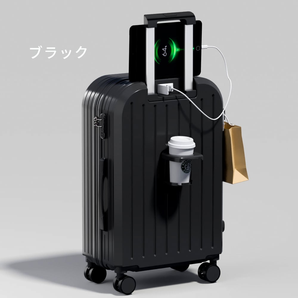 スーツケース USBポート付き 24インチ カップホルダー付き 機内持ち込み キャリーケース キャリーバッグ 軽量設計 多収納 トランク 多機能スーツケース 大容量 国内旅行 修学旅行 海外旅行