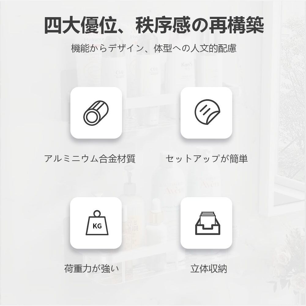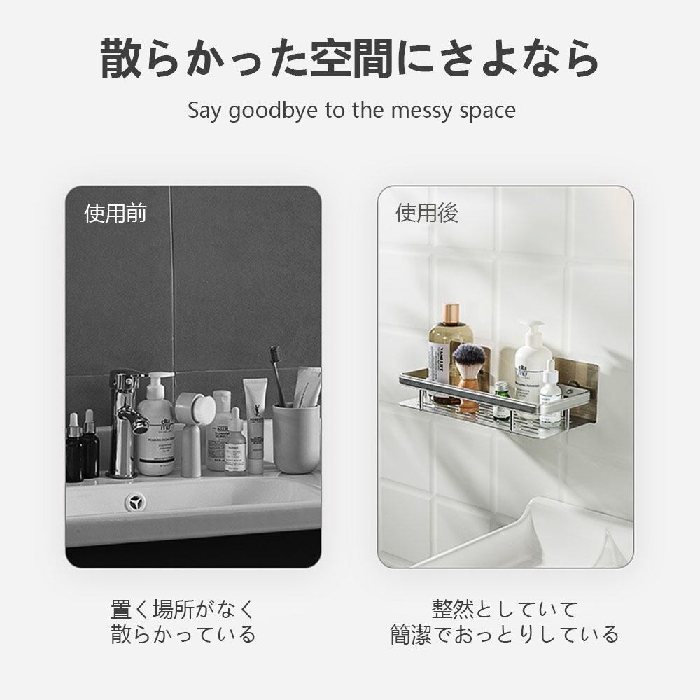 ディスペンサーボトルを最大3本並べて収納でき、シャンプー・コンディショナー・ボディソープはもちろん、歯磨き粉や洗顔料、タンブラーなどの収納にも最適。