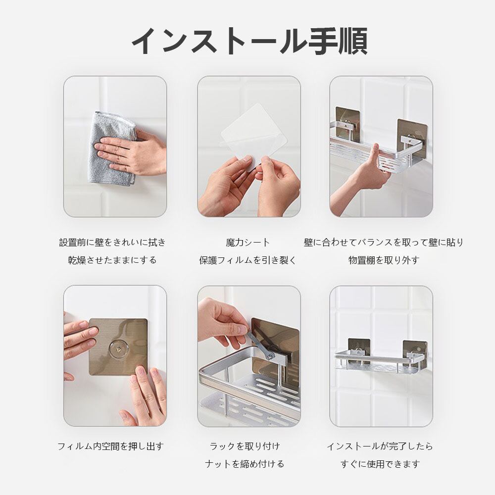 専用の強力粘着シートで簡単に取り付けられるため、工具不要で誰でもすぐ設置可能。耐水・防錆仕様で浴室や洗面所でも安心してお使いいただけます。