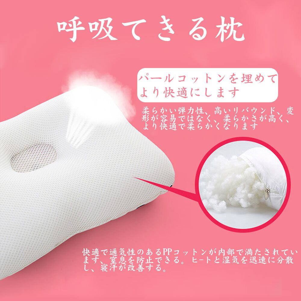新生児から使用できる柔らかいパールコットン中綿を採用し、通気性と弾力性を兼ね備えた作りでムレを防ぎながら頭をしっかり支えます。中央部分のくぼみは頭の位置を安定させ、絶壁防止や寝返り時の圧力分散に効果的です。