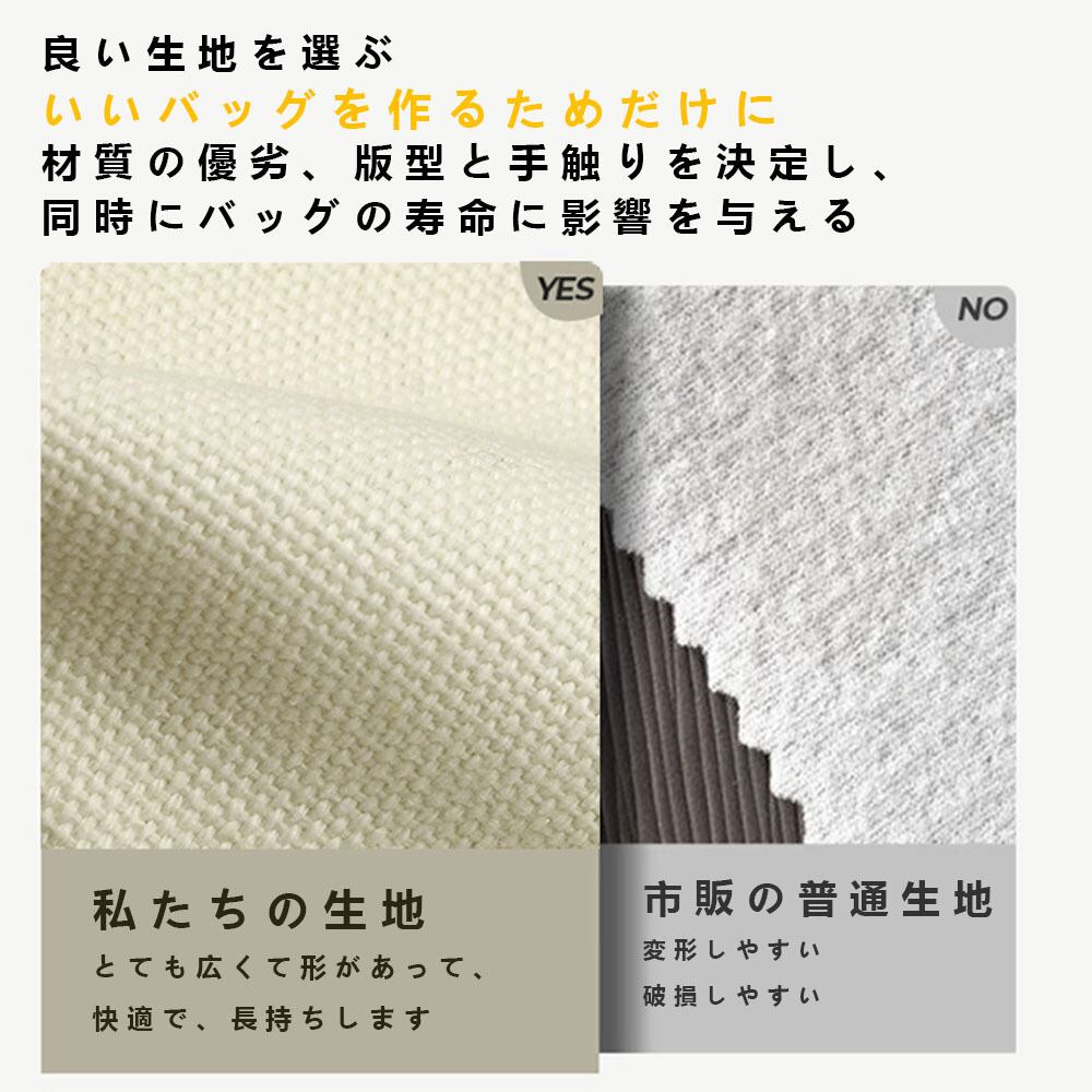 厚手の帆布を使用し、軽量ながら耐久性抜群。日常使いに安心。