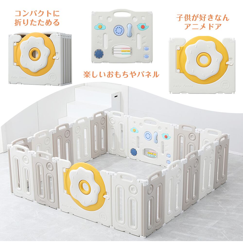 【16+2枚セット】ベビーサークル 赤ちゃん セーフティガード ジョイント式 ハイタイプ 滑り止め付 簡単組立 子供部屋 ベビーゲート サークル スペース ハイタイプ セーフティグッズ D-36