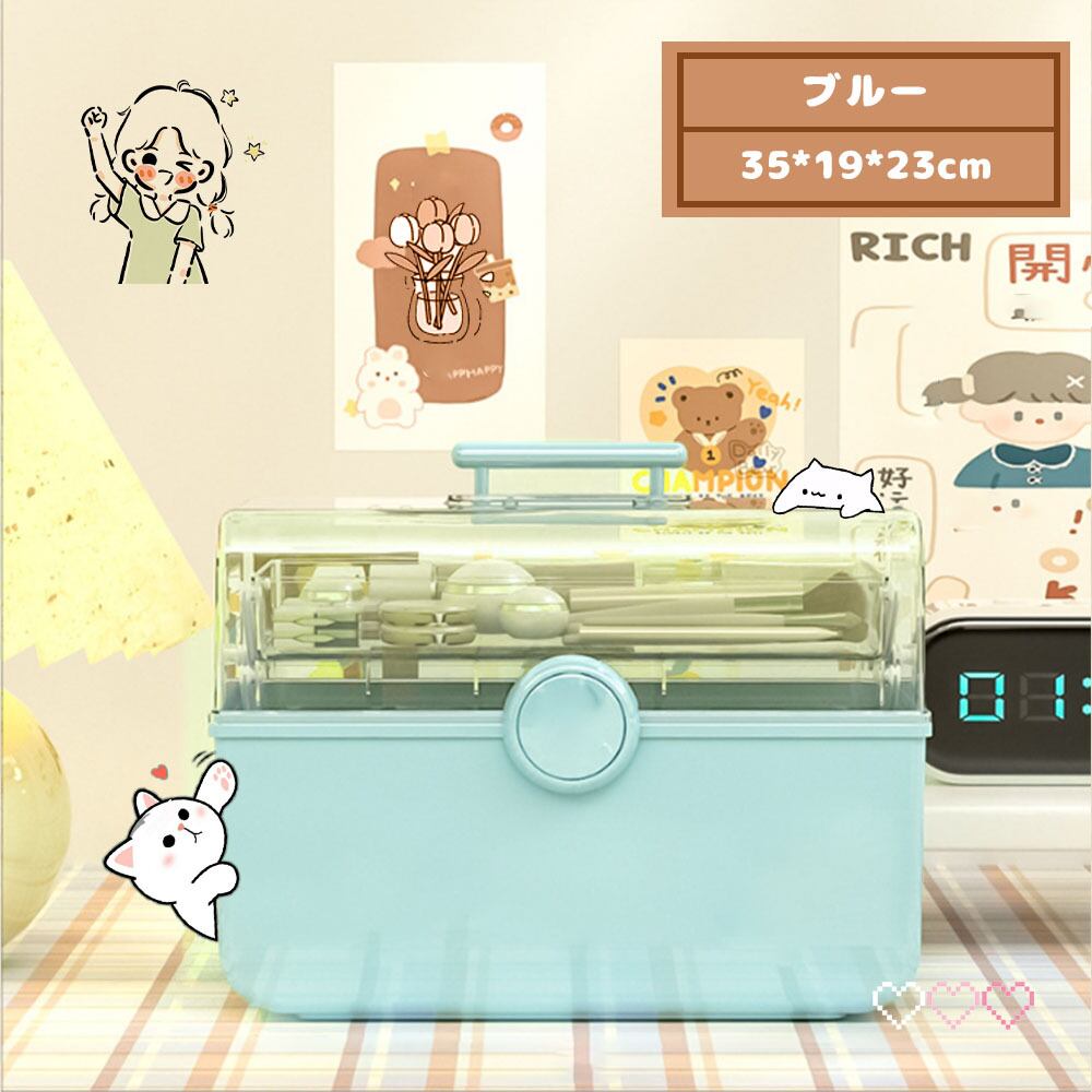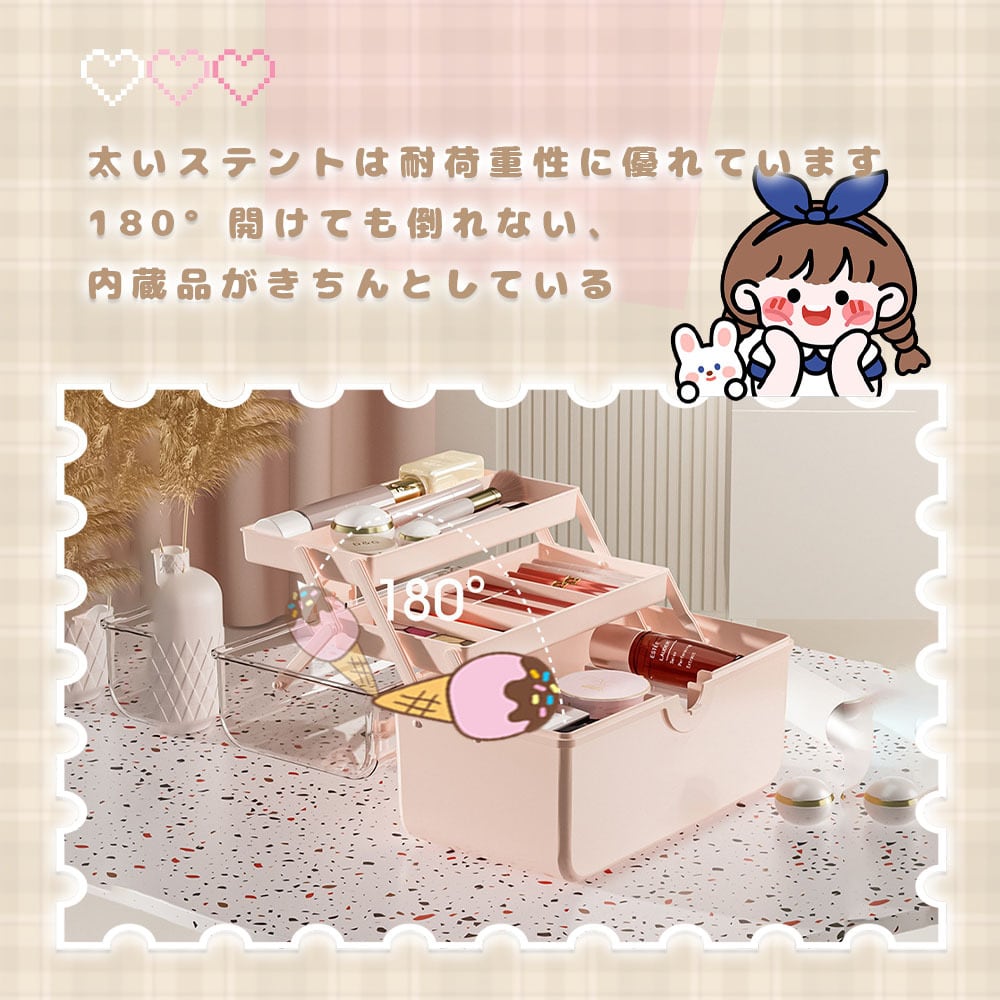 メイクボックス, コスメ収納, 大容量化粧品収納, 持ち運びコスメケース, 2段収納, 北欧風デザイン, 可愛いコスメボックス, 旅行用メイクボックス, プレゼント, ギフト, ピンク, クリームホワイト, ブルー, 卓上収納, 化粧入れ