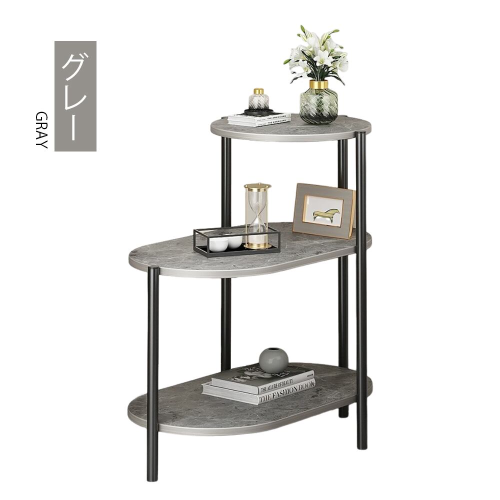 散らかりがちなリビングの小物をすっきりまとめ、洗練された空間を演出する3段式サイドテーブルです。