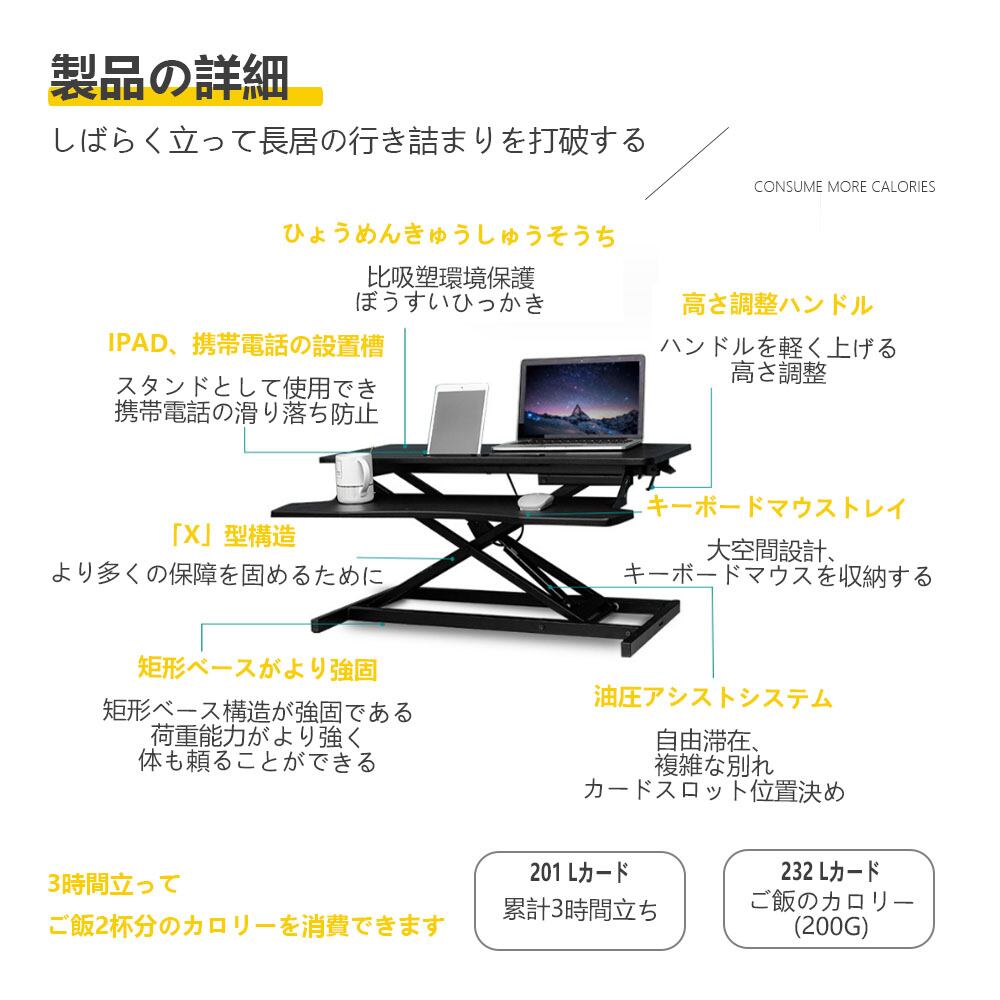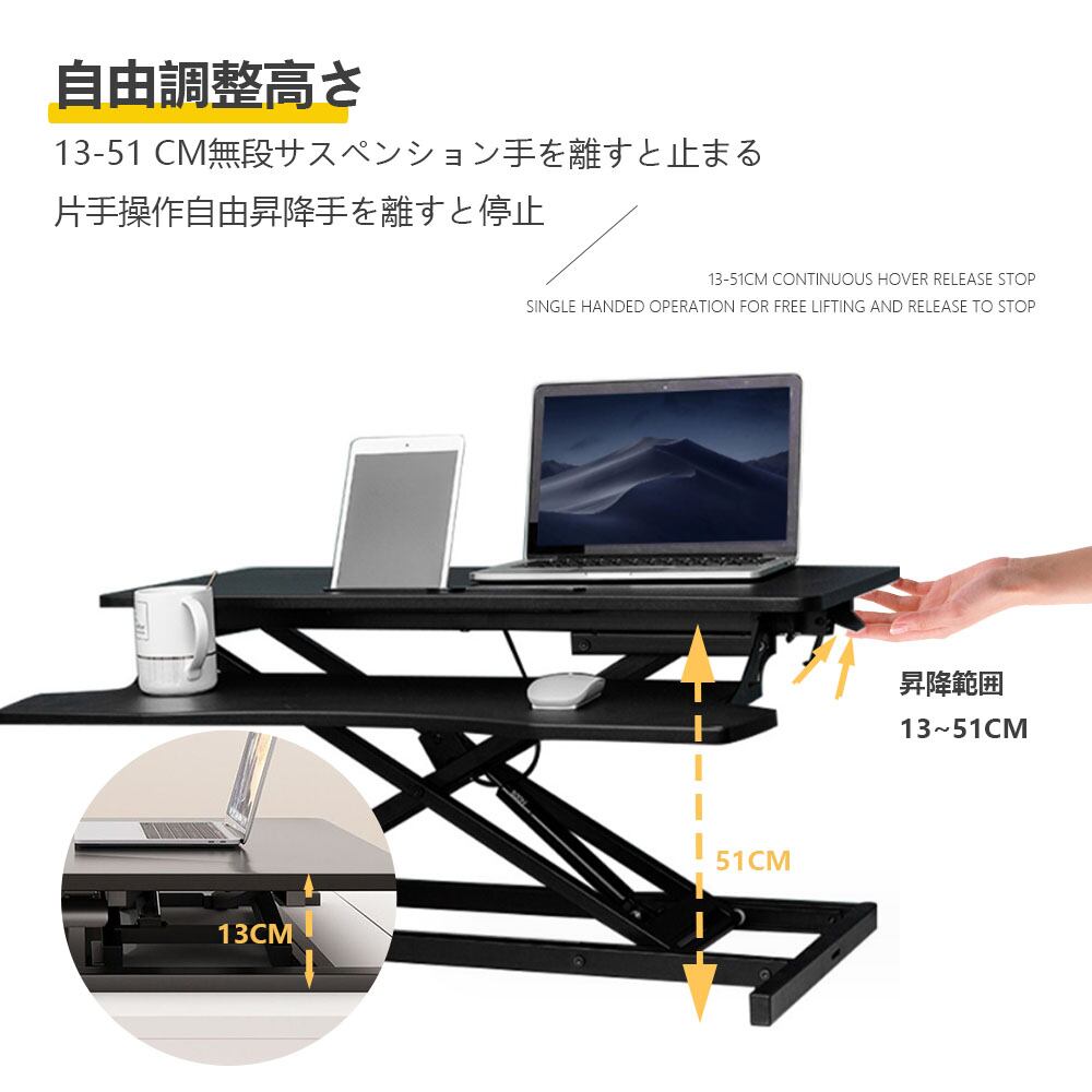 昇降デスク, 折りたたみテーブル, PCスタンド, 立ち作業デスク, テレワーク, 在宅勤務, 姿勢改善, コンパクトデスク, パソコンデスク, 木製デスク, 省スペースデスク, ブラック, ホワイト