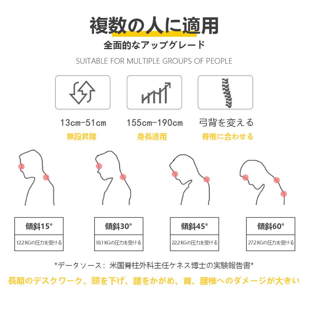 ・13cm〜51cmの多段階高さ調節で、身長155〜190cmに対応