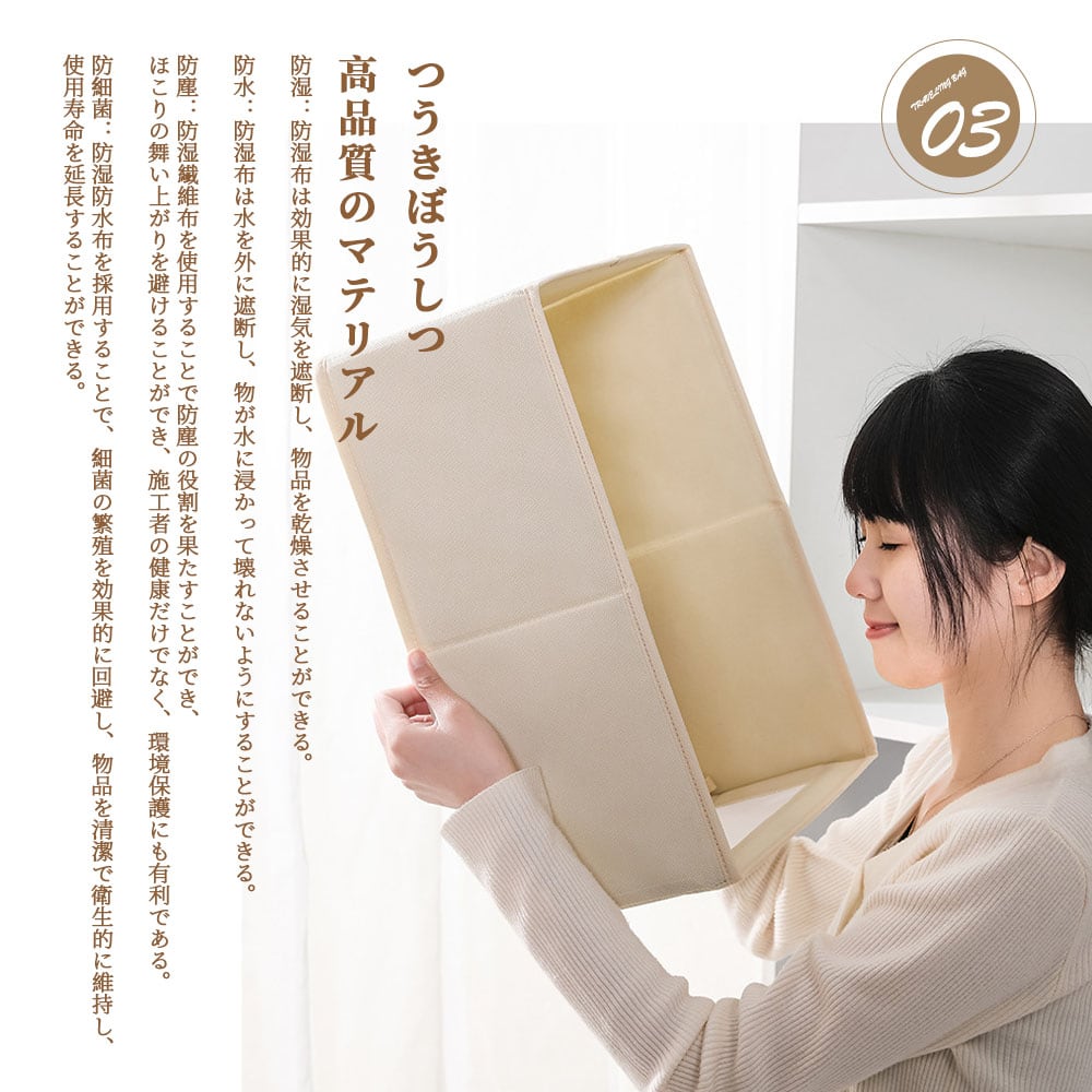 通気性の良いオックスフォード布を使用した布製可視窓収納ボックス(Lサイズ)。