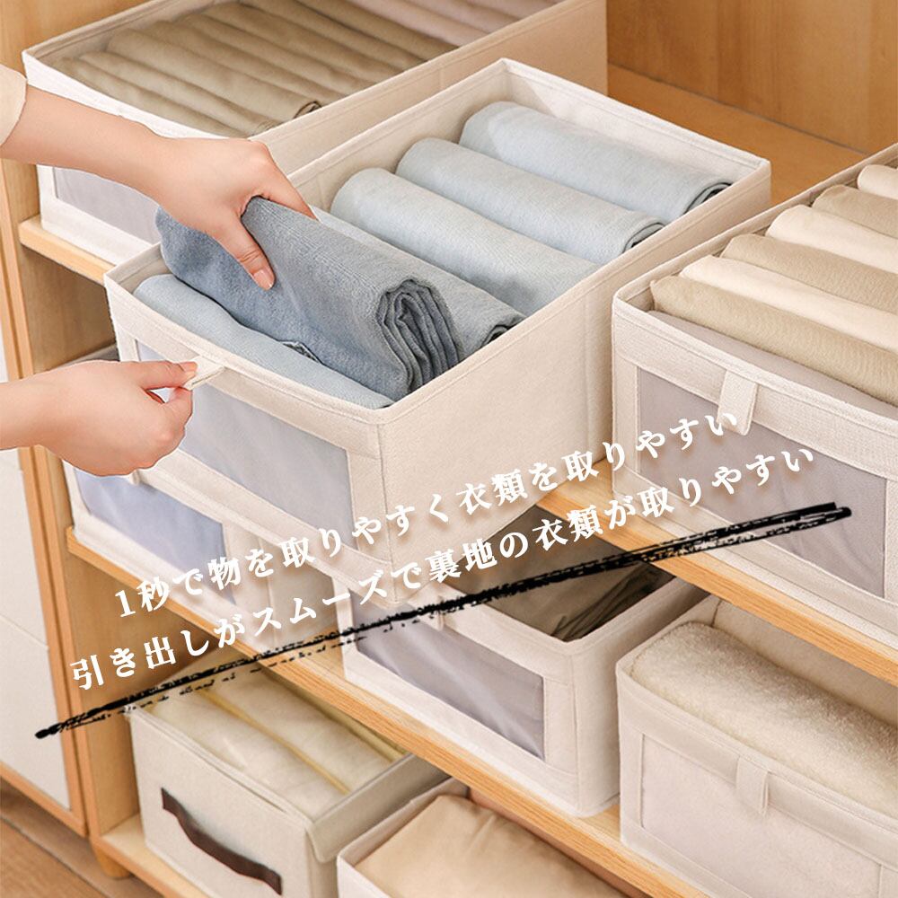 【当日発送】【L-35×20×15】おしゃれな収納ボックス 収納ケース 小物収納 下着収納 靴下収納 引き出し 可視化窓 衣類収納 小物収納 ネクタイ収納 布製 綿 亜麻 S-01