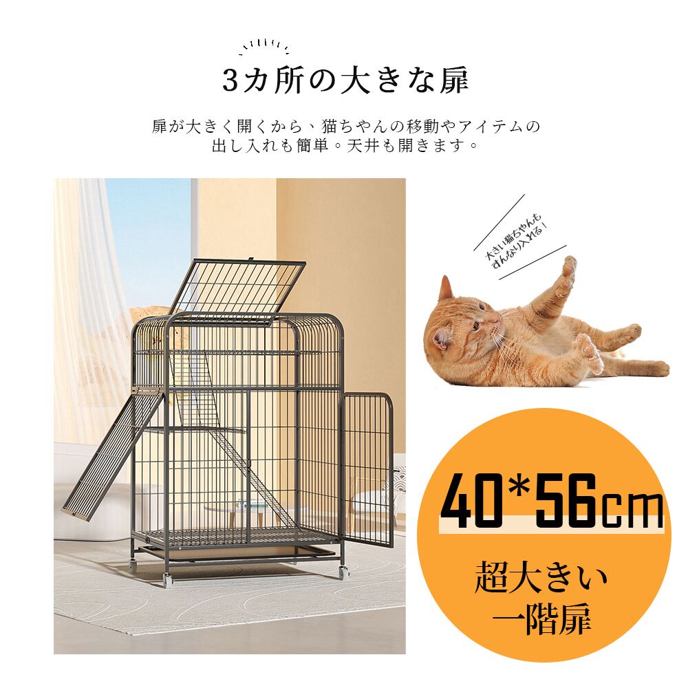 上部、側面、下段の3箇所にドアがあるので、ごはんの交換や猫ちゃん自身の出し入れもスムーズ。