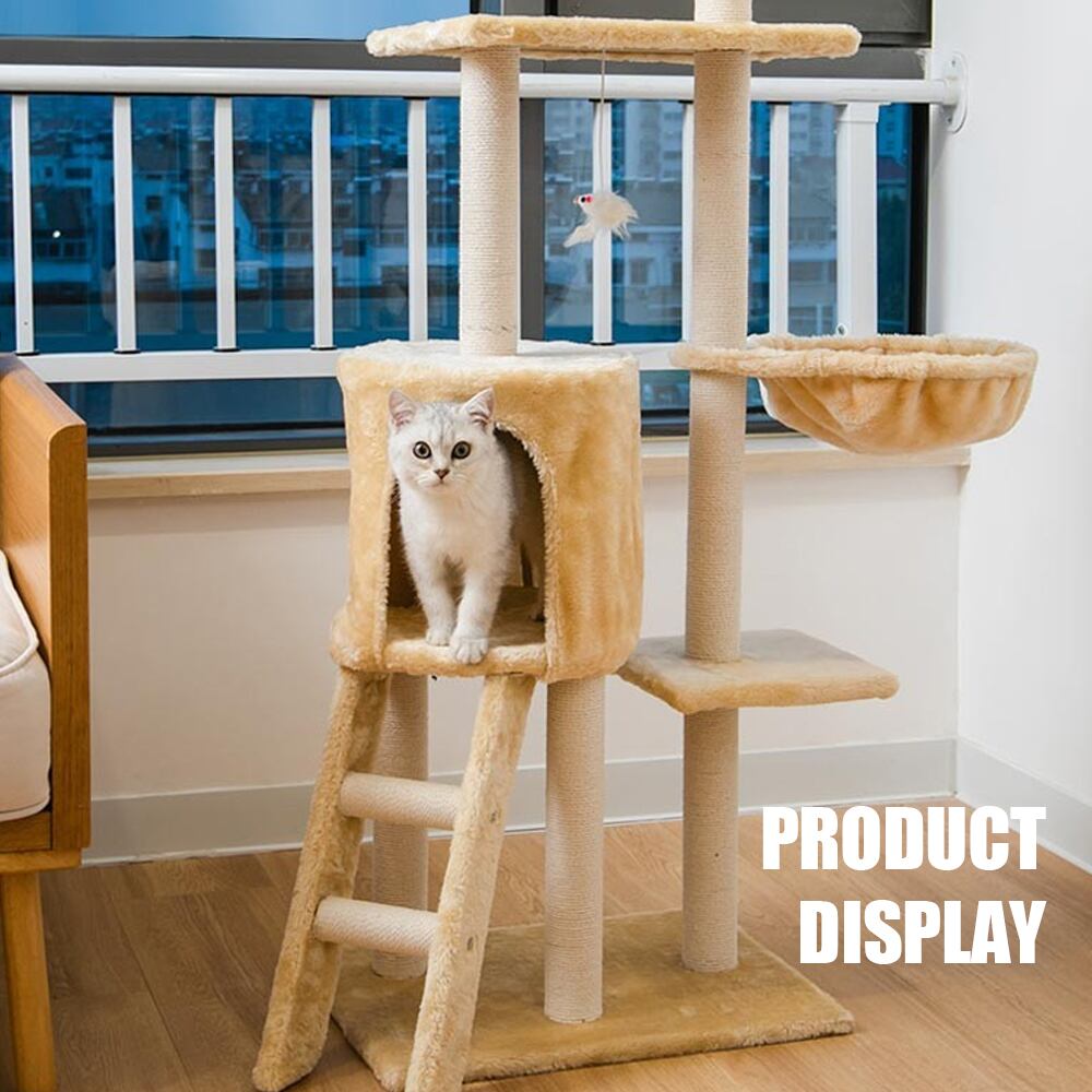 【当日発送】キャットタワー 据え置き 猫ハウス 組み立て式 運動不足解消 爪磨き ネコのおもちゃ キャットランド 隠れ家 ネコ用品 ストレス解消 室内飼い 階段 多頭Y-11