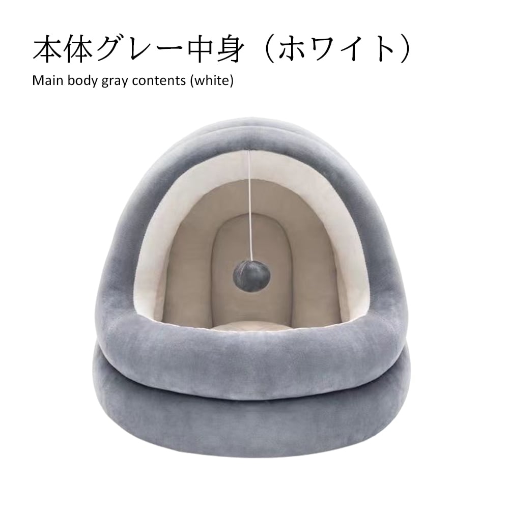 ペットベッド 冬 ドーム型 小型犬 猫 保温 防寒 洗える ベッド クッション グレー 室内用 半密閉 Y05 冬用ペットハウス