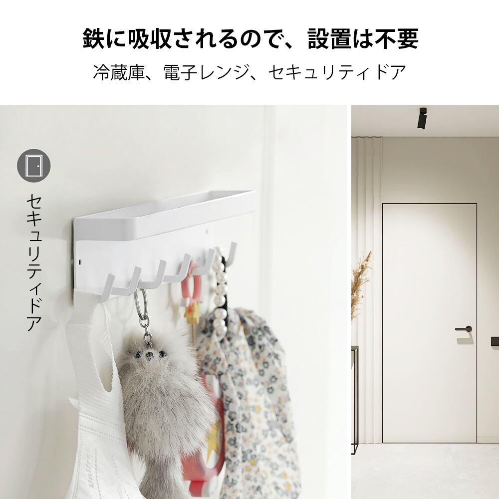 マグネットフック Z-06 6連フック 鍵掛け 冷蔵庫収納 玄関収納 防水 防錆 小物収納 ブラック ホワイト 強力磁石 壁掛け キッチン 浴室 工具掛け 省スペース収納