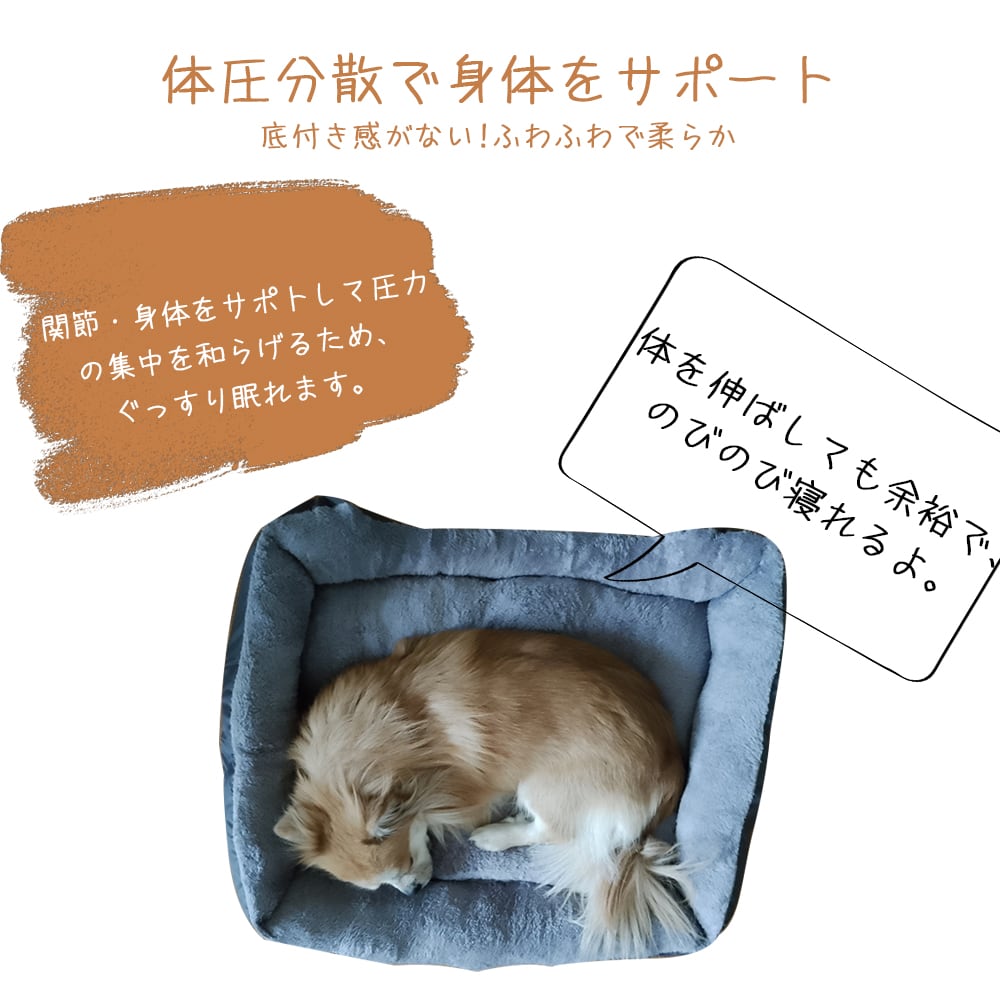 包み込まれる安心感、ふかふかスクエア型ペットベッド