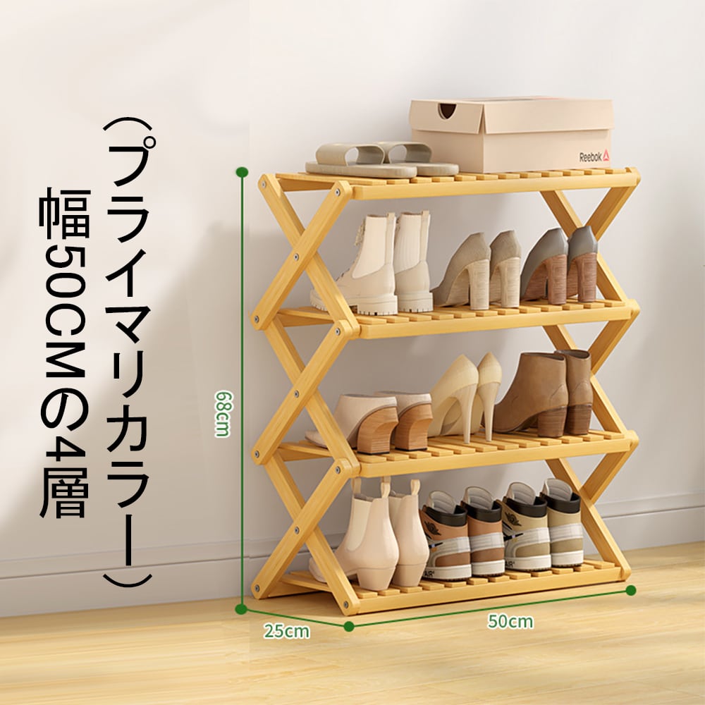 【当日発送】【幅50cm-4層】高級感 折り畳みシューズラック シューズラック ベランダ 竹製 コンパクト ラック 傘立て オープンラック下足箱 折畳式 完成品 組立不要伸縮 しっかり 省 スペース 4/5段あり 小物置き 玄関家具 オシャレ 便利 丈夫 靴収納棚 下駄箱Z-01