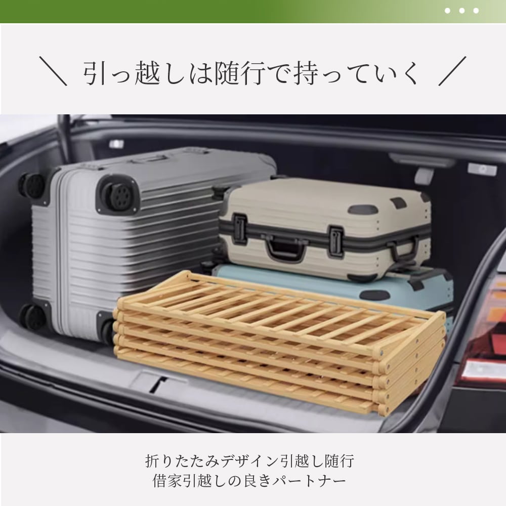 工具不要で10秒簡単設置、使わないときは折りたたんでコンパクトに収納可能。玄関・リビング・ベランダなど、さまざまな場所で活躍します。強度のある竹素材を使用し、安定感も抜群。通気性の良いスノコ構造で、靴の湿気を逃がし清潔に保ちます。
