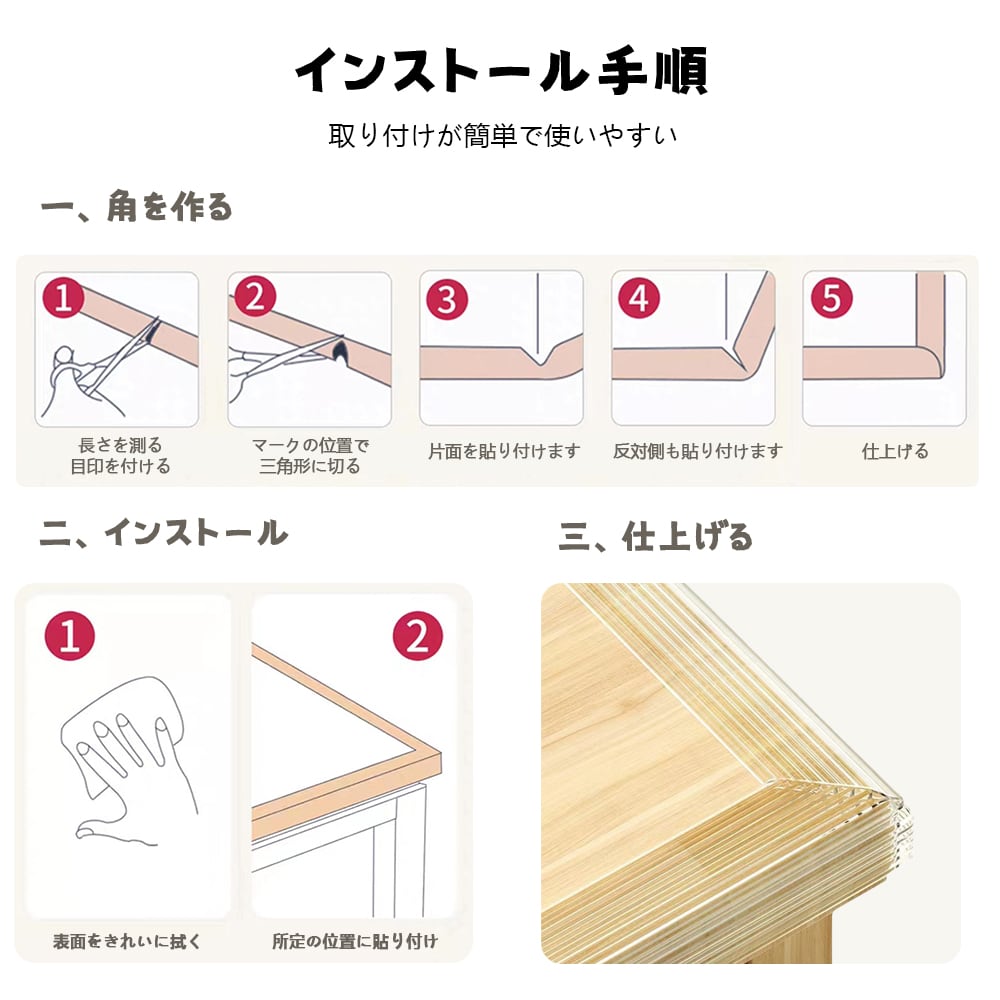 透明素材なので家具の雰囲気を損なわず、どんなインテリアにも自然に馴染みます。必要な長さに自由にカット可能で、テーブルや壁、棚、ベッドなど幅広く対応。取り付けは両面テープを剥がして貼るだけの簡単仕様で、工具不要です。