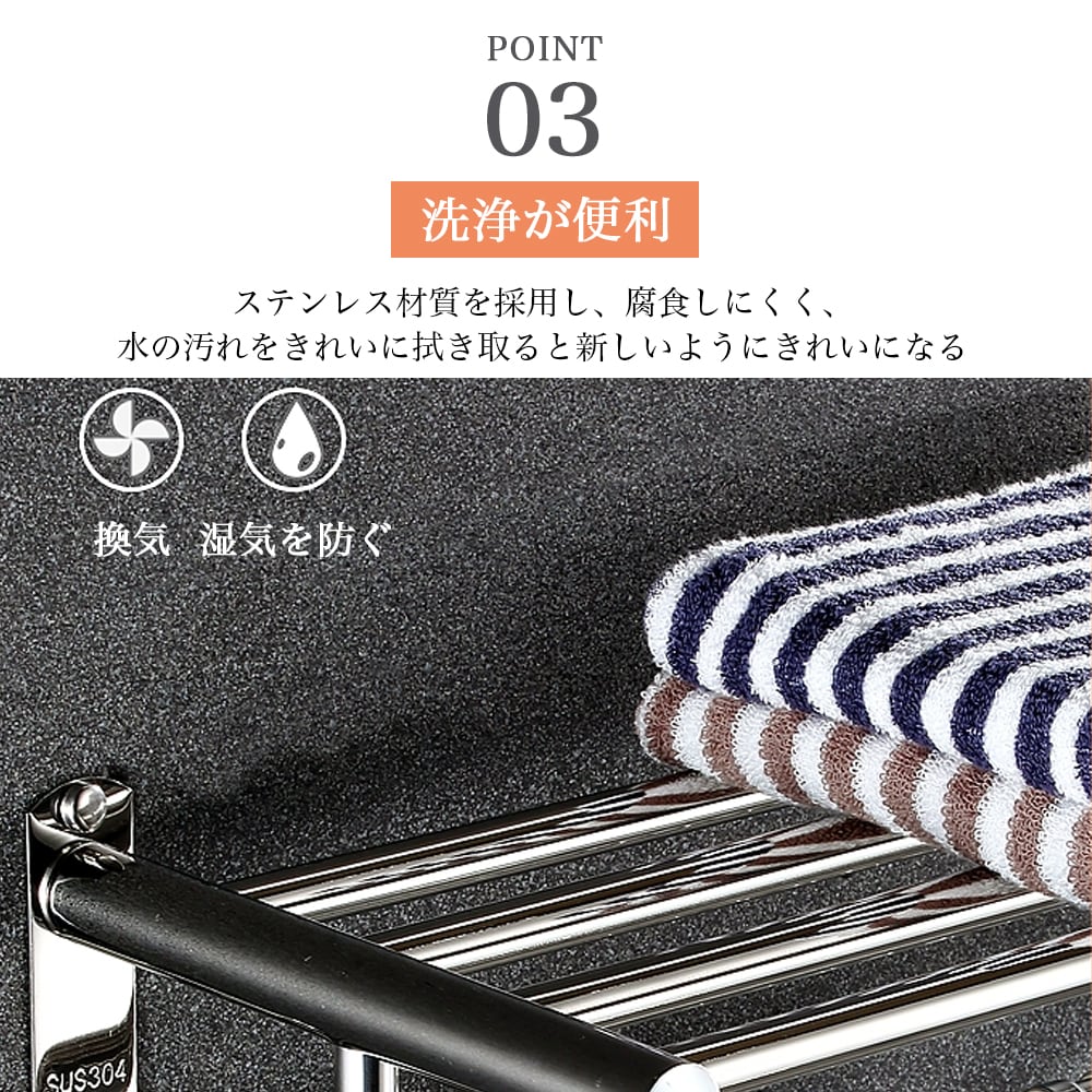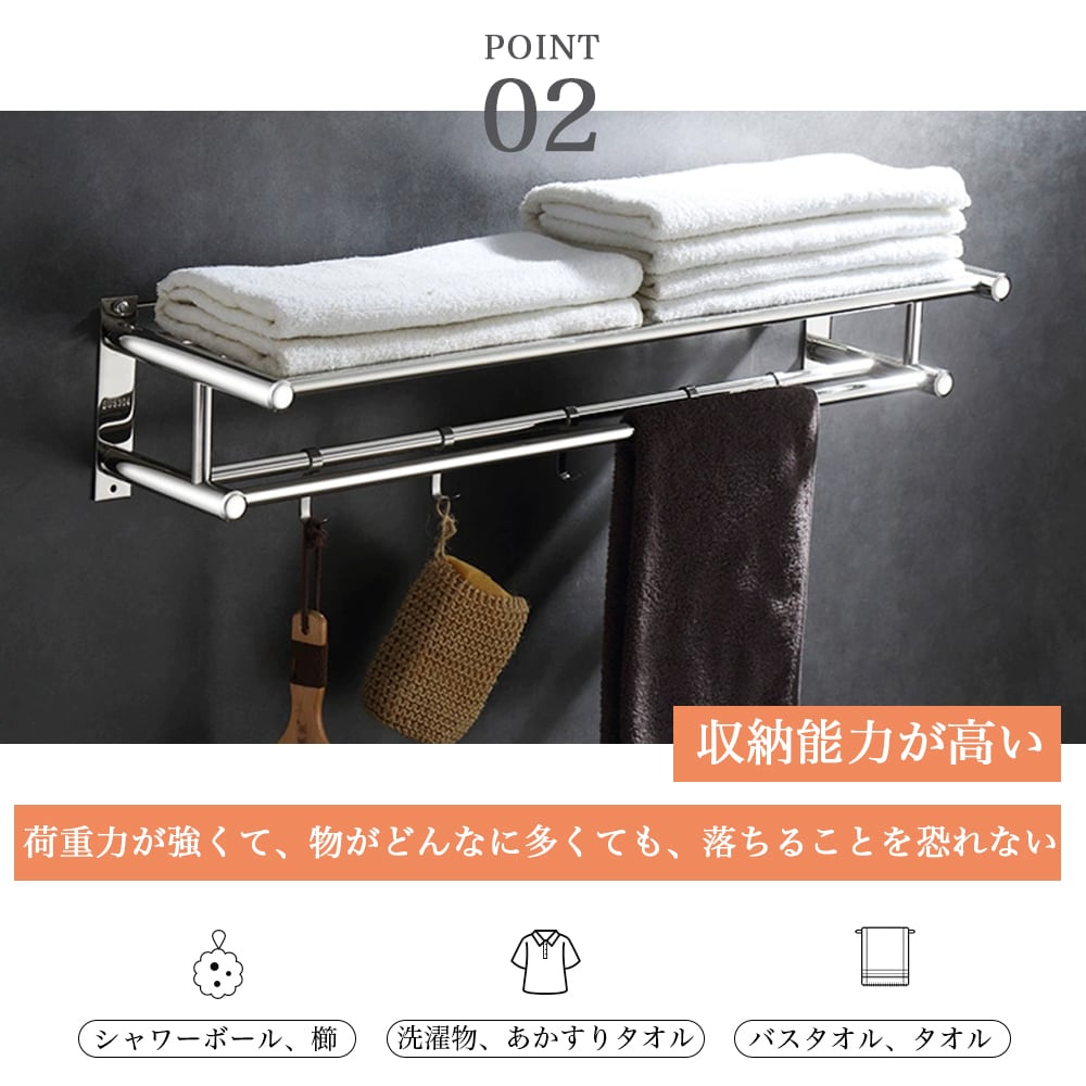 ・耐荷重5kgでタオルや小物をまとめて収納