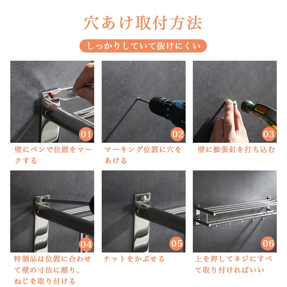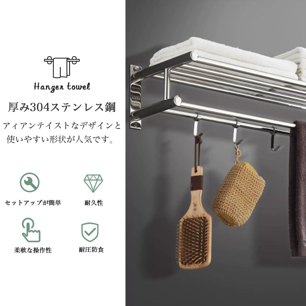 【当日発送】【40cm】タオルハンガー タオル干し 浮かせる収納 掃除用品 タオル掛け 大容量化 ステンレス製 防水素材 台拭き シンプル カビ防止 洗面所 キッチン お風呂 Z-09