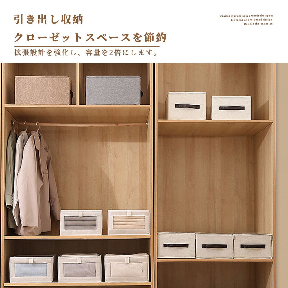 【当日発送】【XXL-45×27×17cm】おしゃれな収納ボックス 収納ケース 小物収納 下着収納 靴下収納 引き出し 可視化窓 衣類収納 小物収納 ネクタイ収納 布製 綿 亜麻 S-01