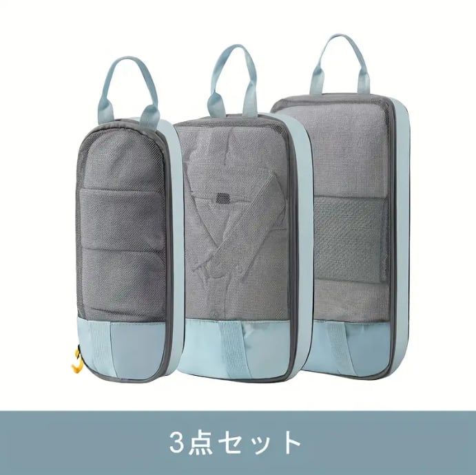 スーツケースが驚くほどスッキリ! ファスナーで簡単圧縮 トラベルポーチ3点セット