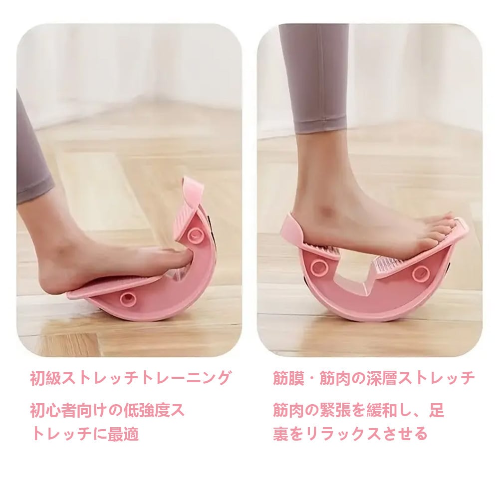 独自のアーチ形状により、足を乗せて体重をかけることで自然な角度で足首からふくらはぎにかけてストレッチしやすい構造になっています。約60度の傾斜設計により、無理のない姿勢で足元から全身のバランスを意識した運動ができ、運動不足が気になる方や、立ち仕事・座り仕事が多い方の日常ケアにも適しています。