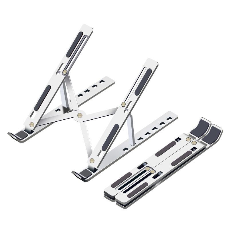 折りたたみ式構造のため、使用しない時はコンパクトに収納可能です。収納袋が付属しており、自宅だけでなくオフィス、カフェ、出張先などへの持ち運びにも適しています。底部は放熱性を考慮した設計で、パソコンの熱を効率よく逃がし、長時間使用時の過熱対策にも役立ちます。