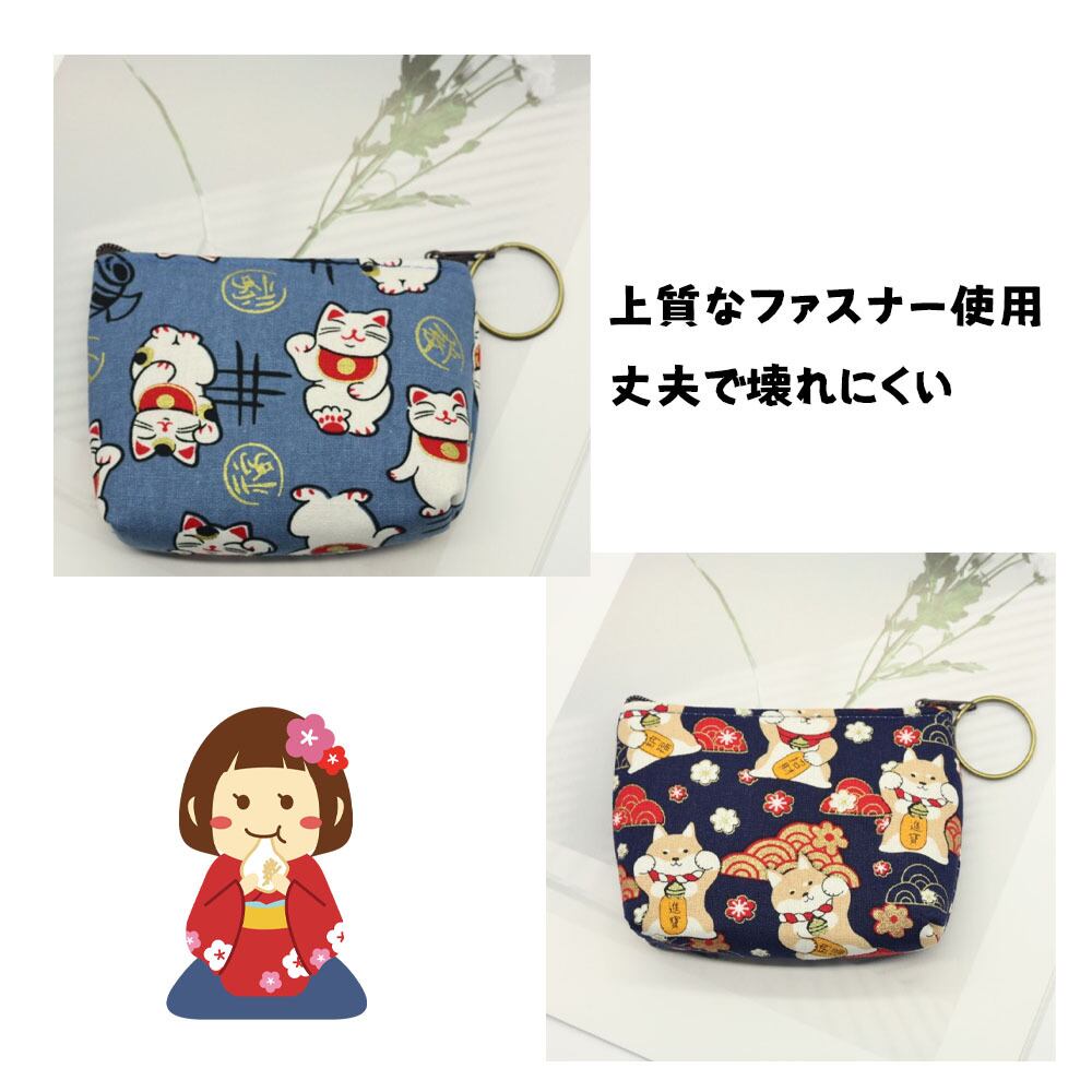 ミニ財布 小銭入れ 和風 財布 小物入れ カードケース 鍵収納 キーリング付き 猫 犬 招き猫 扇子 コンパクト プレゼント ギフト 和柄 CDL-02