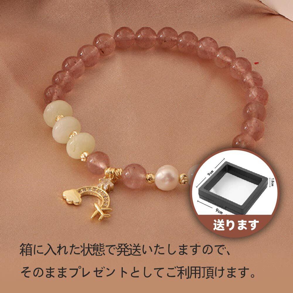 ストロベリークォーツ ブレスレット パール ブレスレット 天然石ブレスレット パワーストーン 6mm ゴムブレス フリーサイズ レディース 上品 普段使い お守り 開運 金運 仕事運 恋愛運 天然石アクセサリー WRTA-BR-088