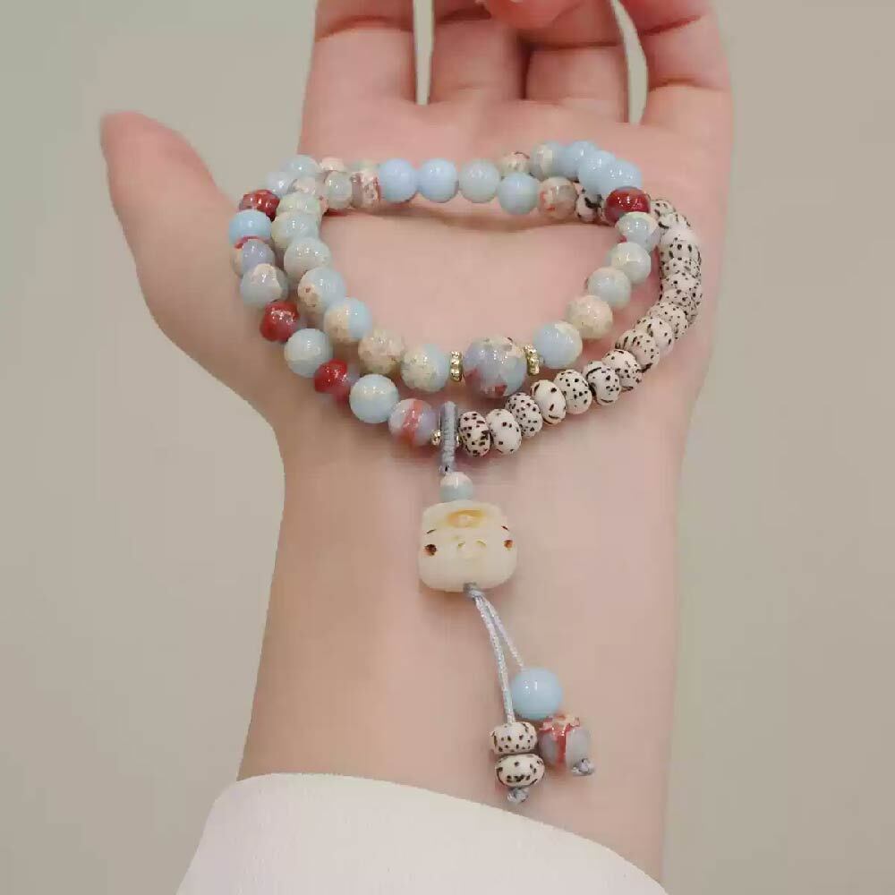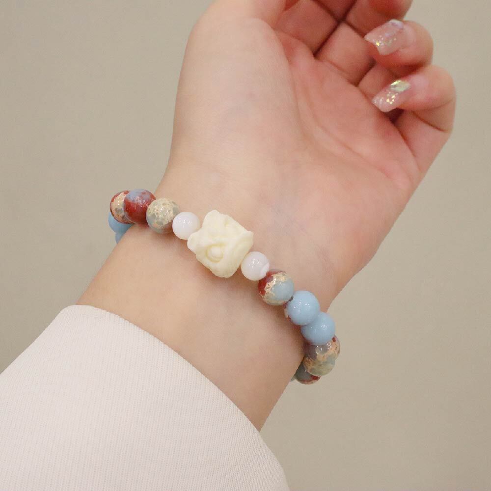 こちらは、6mmサイズの天然ストロベリークォーツをベースに、スクリーンショットに記載されている「石」モチーフスタイルを採用した天然石ブレスレットです。装飾的なモチーフではなく、自然石そのものの質感と表情を活かした構成となっており、ナチュラルで落ち着いた雰囲気を大切にしたデザインに仕上げています。