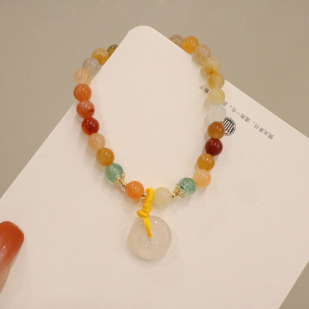 天然石 ブレスレット パワーストーン 8mm キンスイ玉 ぎょく 平安扣 円環 スタイルA 五彩 ナチュラル ゴムブレス フリーサイズ レディース 上品 日常使い ギフト プレゼント 開運 金運 仕事運 WRTA-BR-293