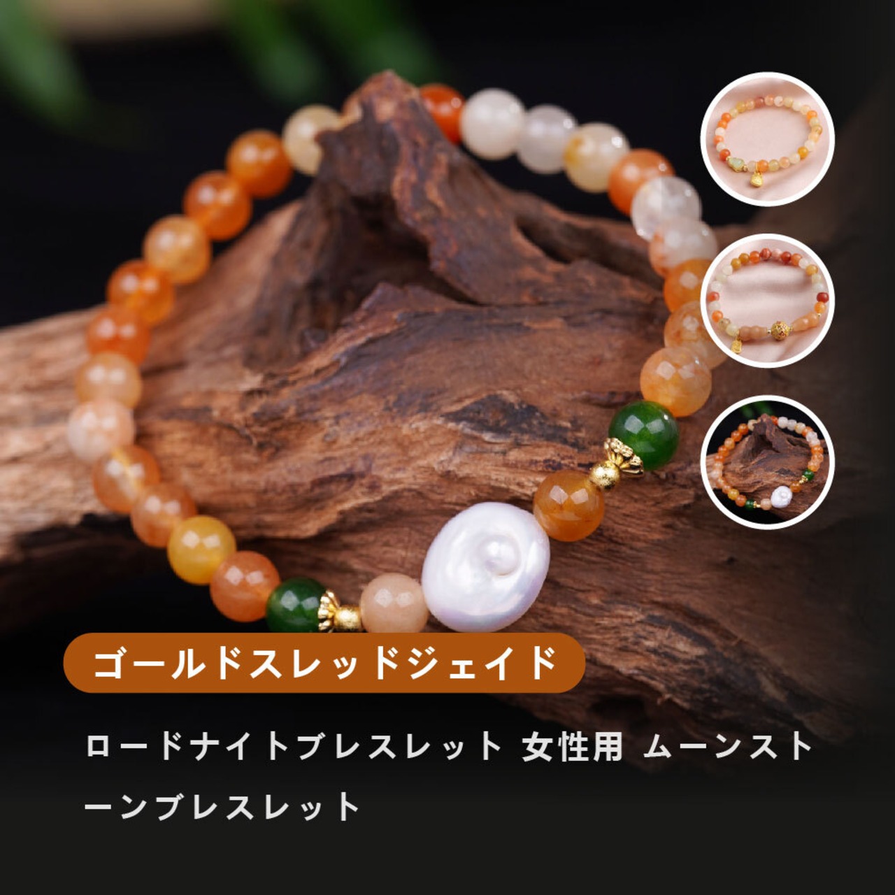 天然石 ブレスレット パワーストーン 6mm ゴールドスレッドジェイド ロードナイト ムーンストーン スタイルB ゴムブレス フリーサイズ レディース 上品 ナチュラル 日常使い ギフト プレゼント 開運 金運 仕事運 WRTA-BR-379